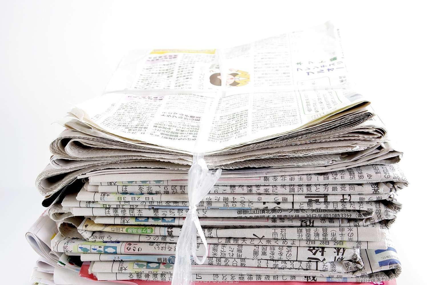 新聞紙の回収を承ります。新聞、チラシ以外のものは混ぜないでください。小冊子やDMは雑誌と一緒にお願いします。